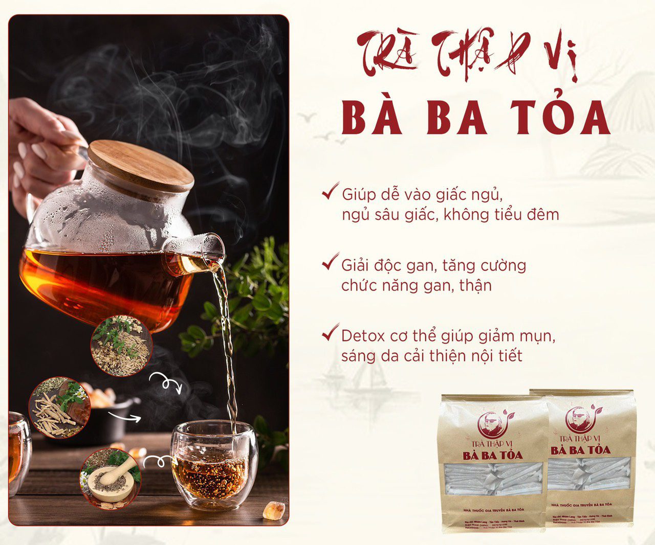 Trà Thập Vị Bà Ba Tỏa là một loại trà truyền thống của Việt Nam, được pha từ 10 loại thảo mộc khác nhau. Trà này có vị ngọt, mát, đắng, chua, cay, mặn, hơi đắng, hơi ngọt, hơi cay và hơi mặn. Tên gọi “Bà Ba Tỏa” xuất phát từ câu chuyện kể rằng một người phụ nữ tên là Bà Ba đã pha trà này để chữa bệnh cho một người bị ốm.